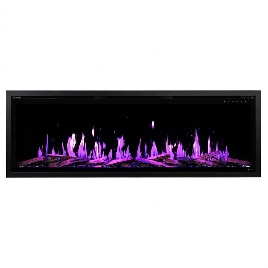 The OR52-SLIM-V2 includes everything you need: internally-lit realistic log set, black reflective crushed glass media, multi-function remote control, and WiFi connectivity through the Modern Flames+ app with Alexa and Google Home integration. The built-in 5,000 BTU PTC ceramic heater provides supplemental warmth for rooms up to 400 sq. ft., and the heater operates independently from the flame display so you can enjoy the ambiance year-round.