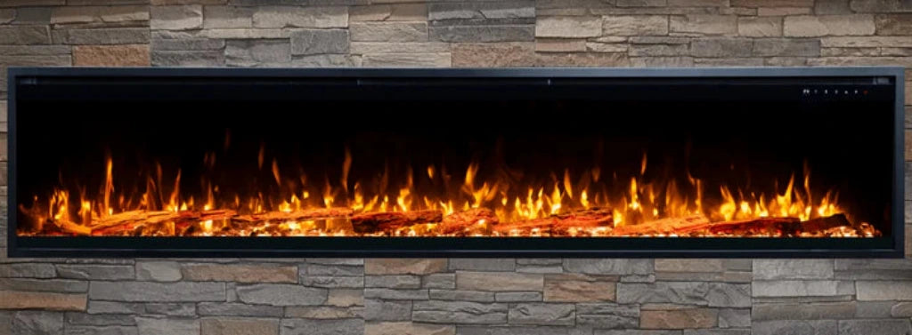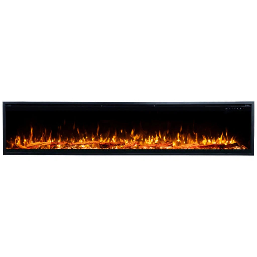 The Touchstone Sideline Elite® Pro 100-inch Smart Electric Fireplace combines professional-grade flame technology with smart-home convenience, bringing a luxurious and realistic ambiance to any space. Designed with a deeper viewing area, premium crystals, and driftwood accents, this fireplace features a built-in crackle speaker with adjustable volume for an immersive experience. Fully compatible with Alexa and Google Home, it offers extensive customization options: 6 flame colors, 13 ember bed colors, 5 flame speeds, and 13-color downlighting, creating up to 78 unique color combinations. Perfect for rooms up to 400 sq. ft., it provides supplemental heat with two settings and a thermostat mode, delivering both style and comfort. An eco-friendly alternative to traditional wood-burning fireplaces, the Sideline Elite Pro ensures a clean, odorless environment. Installation is flexible—you can wall-mount or recess the unit, with easy placement options and a recommended 8-inch clearance above the fireplace for décor or electronics. Elevate your living space with a modern, versatile, and customizable fireplace experience.