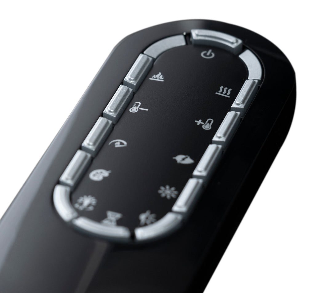 • Adjust flame brightness and color to match your mood or décor with the mood-maker remote.