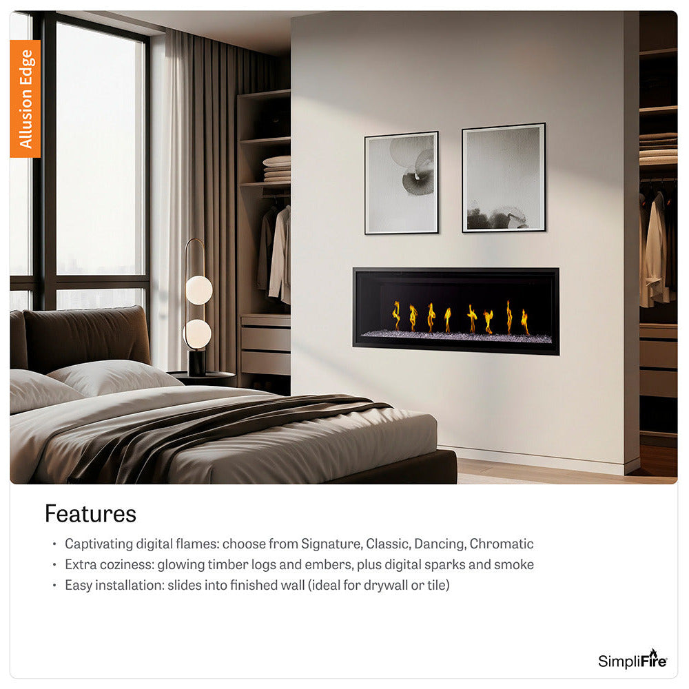 SimpliFire Allusion Edge 50" Linear Electric Recessed Fireplace | SF-ALLE50