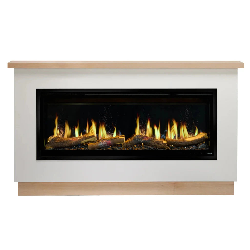 Lifelike digital flames flicker and crackle over glowing logs and embers, delivering all the cozy feels within a modern fireplace design. A sleek profile and subtle heat vents keep the focus on the fire, while slide-in installation and an optional build-out kit make it easy to integrate beautifully. Choose your favorite flame look, control it by remote or app, and enjoy with or without heat all year long.